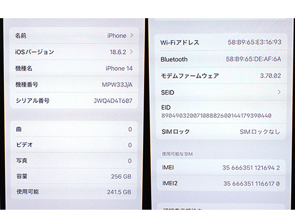 【中古】SIMフリー au iPhone 14 256GB スターライト MPW33J/A 本体 制限〇 一括購入 バッテリー最大容量96%(QJA447-1) ■状態■ ネットワーク利用制限〇 本体代金支払い済み SIMフリー端末です。 [本体/液晶] キズや擦れがあります。 [バッテリー] 出品時の最大容量 96% ※出荷までの保管期間で1~2%変動する場合あり。 リセット済み 動作問題なし AppleID削除済み ■Apple保証■ 保証期限切れ 2025年3月21日に期限切れ 購入日: 2023年3月11日 詳しくはアップル公式 保証状況サイトでご確認ください。 ■モデル型番■ MPW33J/A ■製造番号■ IMEI: 356663511216942 シリアル番号: JWQ4D4T607 ■付属品■ 本体のみ 2025/10/7 T