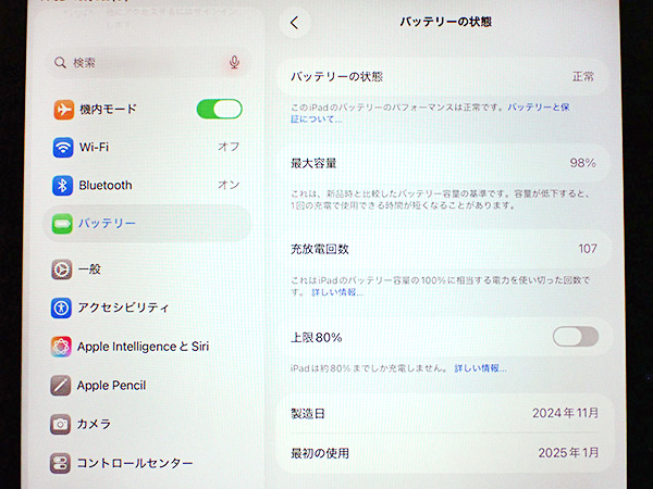 ☆【中古 美品】iPad Air 11インチ M2 第6世代 Wi-Fi 256GB ブルー MUWH3J/A 2024年春モデル 本体 バッテリー最大容量98%(QZ295-4) ■状態■ Wi-Fiモデルですので SIMカードを使っての通信・通話はできません。 [フレーム/液晶] キズや擦れはなくとても綺麗です。 動作問題なし リセット済み AppleID(アクティベーションロック)削除済み [バッテリー] 出品時の最大容量 98% ※出荷までの保管期間で1~2% 変動する場合あり。 【Apple保証】 購入日: 2025年1月2日 限定保証 有効期限:2026年1月1日 詳しくはアップル公式 保証状況サイトでご確認ください。 ■モデル型番■ MUWH3J/A ■製造番号■ J0L27K779C ■付属品■ 本体、印刷物、箱のみ 2025/10/9 T