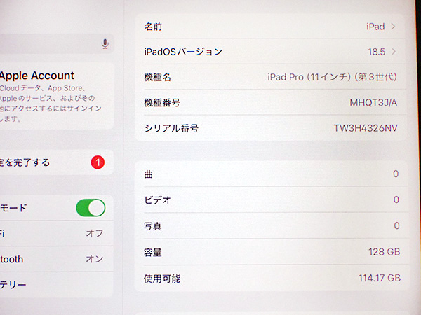 【中古】iPad Pro 11インチ 第3世代 Wi-Fi 128GB シルバー MHQT3J/A 2021年春モデル 本体(QHA225-1) ■状態■ Wi-Fiモデルですので SIMカードを使っての通信・通話はできません。 [フレーム/液晶] フレームに小さなキズや擦れがあります。 液晶に傷はなくキレイです。 動作問題なし リセット済み AppleID(アクティベーションロック)削除済み [バッテリー] バッテリー最大容量:87% ※検査ソフトで確認しています。 数値は目安としてお考え下さい。 【Apple保証】 保証期限切れ 2023年8月31日に期限切れ 購入日: 2022年8月31日 詳しくはアップル公式 保証状況サイトでご確認ください。 ■モデル型番■ MHQT3J/A ■製造番号■ TW3H4326NV ■付属品■ 本体のみ 2025/10/9 T