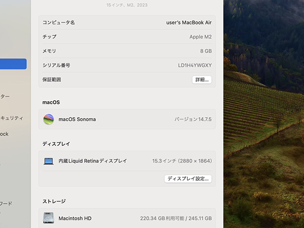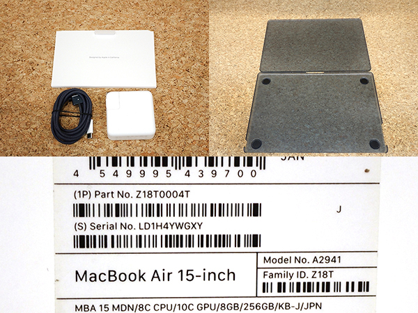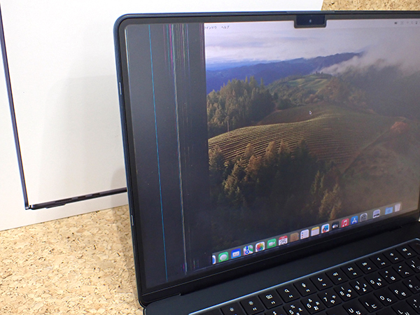 【中古 ジャンク】液晶不良 MacBook Air 15.3インチ 2023年 Z18T0004T ミッドナイト [M2チップ 8コア/8GB/SSD:256GB] 本体(QEA403-1) ■状態■ [液晶/ジャンク] 左側に液晶漏れがあります。 液晶パネルに傷はありません。 液晶不良以外の動作に問題はありませんが、 ジャンク品となりますので今後の動作保証は出来ません。 [本体] 傷や擦れがあります。 [バッテリー] 最大容量 92% バッテリーの状態 正常 ※出荷時の動作確認等で変わる可能性があります。 画像でご確認ください 動作問題なし リカバリー済み 初期化後、動作確認の為 初期設定を行っております パスワードは解除しておりますので、 ログイン画面では何も入力せず Enterキーでログインできる状態にしてお送りいたします。 中古ですがカバーをおつけします。 ■スペック■ Z18T0004T ヨドバシカメラ購入モデルです。 仕様は全て「MQKW3J/A」に準じる商品です。 MacBook Air 15.3インチ 発売時期: Mid 2023 カラー : ミッドナイト CPU : Apple M2チップ 8コア メモリ : 8GB SSD : 256GB ■保証状況■ 保証期限切れ 購入日: 2023年11月16日 2024年11月16日に期限切れ 詳しくはアップル公式 保証状況サイトでご確認ください。 ■モデル型番■ Z18T0004T ■製造番号■ SLD1H4YWGXY ■付属品■ 写真でご確認いただけるものがすべてです。 2025/10/17 K