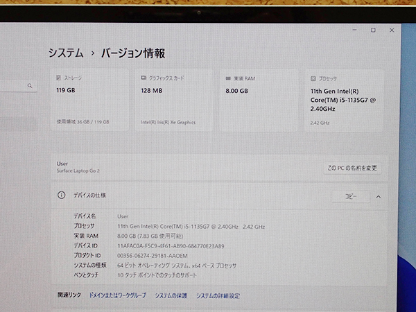 【中古】Surface Laptop Go 2 アイス ブルー 8QC-00043[Win11 Home/12.4インチ/ Core i5 1135G7/8GB/128GB] 本体(QGA468-1) ■状態■ [本体] 小さい傷や擦れがあります。 背面に取れない汚れがあります。 液晶ガラスに傷はありません。 写真でご確認ください。 [保証期限] 保証期限切れ 動作問題なし リカバリー済み ■スペック■ カラー:アイス ブルー SSD:128GB メモリ:8GB CPU:第11世代 インテル Core i5 1135G7(Tiger Lake) 2.4GHz/4コア Office:なし OS:Windows 11 Home ■モデル型番■ 8QC-00043 ■製造番号■ 0B33BX6223237H ■付属品■ 本体と充電器のみ 2025/10/21 K