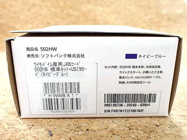 【新品 未使用】SIMロック解除 ワイモバイル Pocket Wi-Fi 502HW / 電池パック HWBBJ1 SIMフリー モバイルルーター 制限〇(QDB18-67) ■状態■ ネットワーク利用制限〇 本体代金支払い済み SIMロック解除済み 使用されるSIMカードが端末に対応しているか、 ご自身で確認をお願いいたします。 未使用です。 SIMロック解除手続きの操作と通電確認のみ行っています。 購入後、裏蓋にテープを貼った状態で保管しておりました。 出品にあたり、テープは除去済みです。 見た目にはテープ跡などの残りはございませんが、 アルコールなどの水分を含むもので拭いた場合、一時的にうっすらと跡が浮かび上がることがあります。 ■モデル型番■ 502HW ■製造番号■ 867382024063954 ■付属品■ 購入時のものはすべてございます。 ※購入レシートや納品書等はございません 2025/11/5 T