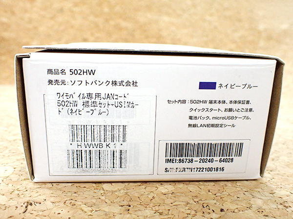 【新品 未使用】SIMロック解除 ワイモバイル Pocket Wi-Fi 502HW / 電池パック HWBBJ1 SIMフリー モバイルルーター 制限〇(QDB18-68) ■状態■ ネットワーク利用制限〇 本体代金支払い済み SIMロック解除済み 使用されるSIMカードが端末に対応しているか、 ご自身で確認をお願いいたします。 未使用です。 SIMロック解除手続きの操作と通電確認のみ行っています。 購入後、裏蓋にテープを貼った状態で保管しておりました。 出品にあたり、テープは除去済みです。 見た目にはテープ跡などの残りはございませんが、 アルコールなどの水分を含むもので拭いた場合、一時的にうっすらと跡が浮かび上がることがあります。 ■モデル型番■ 502HW ■製造番号■ 867382024064028 ■付属品■ 購入時のものはすべてございます。 ※購入レシートや納品書等はございません 2025/11/5 T