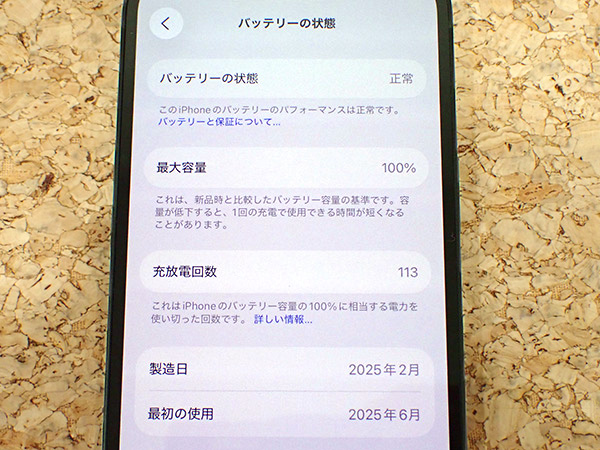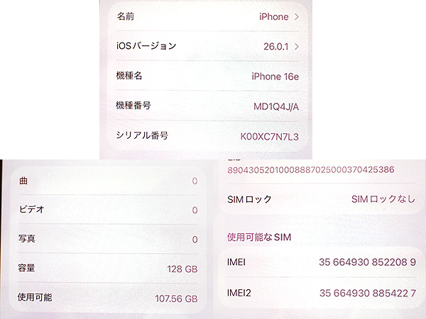 【中古 美品】国内版 SIMフリー iPhone 16e 128GB ブラック 黒 MD1Q4J/A 本体 一括購入 バッテリー最大容量100%(QLB5-1) ■状態■ [本体/液晶] 目立つ傷や擦れはなくとても綺麗です。 [バッテリー] 出品時の最大容量 100% ※出荷までの保管期間で1~2%変動する場合あり。 動作問題なし リセット済み AppleID(アクティベーションロック)解除済み ■Apple保証■ 購入日: 2025年4月16日 限定保証 有効期限:2026年6月14日 詳しくはアップル公式 保証状況サイトでご確認ください。 ■モデル型番■ MD1Q4J/A ■製造番号■ IMEI: 356649308522089 シリアル番号: K00XC7N7L3 ■付属品■ 本体のみ 2025/11/11 T