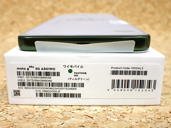 【新品 未使用】SIMフリー ワイモバイル Motorola moto g66y 5G A501MO 128GB ディルグリーン スマホ Android 本体(QKA1122-2) ■状態■ ネットワーク利用制限〇 本体代金支払い済み ワイモバイルから発売のSIMフリー端末です。 新品未使用です。 店頭で開通作業の為、一度開封しています。 本体を包んでいる紙に折れ目や破れがあります。 写真でご確認ください。 ※万が一初期不良などがあった場合は直接メーカーへお問い合わせをお願いいたします。 ■モデル型番■ A501MO ■製造番号■ 357325840899058 ■付属品■ 購入時のものはすべてございます。 ※購入レシートや納品書はございません。 2025/11/12 T
