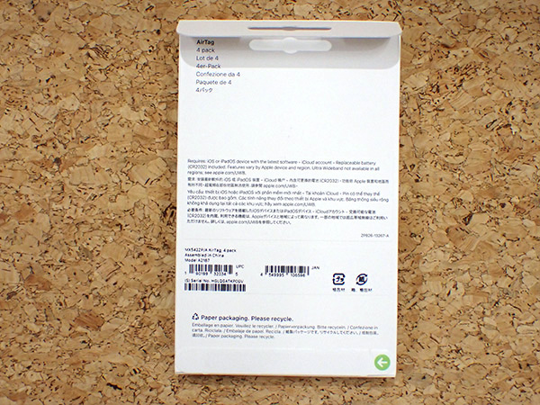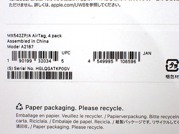 【新品 未開封】Apple 純正 AirTag エアタグ 4パック MX542ZP/A A2187 本体《全国一律送料430円》(QKA1037-1) ■状態■ 新品未開封です。 万が一初期不良が発生した場合は直接メーカーにお問い合わせください。 ■保証状況■ 購入日: 2025年10月21日 限定保証 有効期限: 2026年10月20日 詳しくはアップル公式 保証状況サイトでご確認ください。 ■モデル型番■ MX542ZP/A ■製造番号■ HGLQGATKP0GV ■付属品■ 購入時のものはすべてございます。 ※購入レシートや納品書等はございません 2025/11/7 T