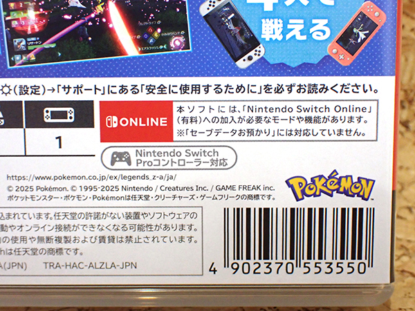 【中古】Nintendo Switch Pokemon LEGENDS Z-A ポケモン レジェンズ ゲームソフト《全国一律送料430円》(QLA530-3) ■状態■ 使用に伴う擦れはありますが、 目立つ大きな傷はありません。 早期特典は中古品ですので、使用されているとお考えください。 写真でご確認ください。 読み込み、動作問題なし ■JANコード■ 4902370553550 ■付属品■ 写真でご確認いただけるものがすべてです。 2025/11/19 K