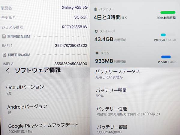 【中古 美品】SIMフリー docomo Galaxy A25 5G SC-53F ブラック 64GB サムスン Android スマホ 本体 制限〇 一括購入(QFA966-1) ■状態■ ネットワーク制限〇 本体代金支払い済み docomoから発売のSIMフリー端末です。 使用されるSIMカードが端末に対応しているものか、 ご自身でお調べいただいた上でのご購入をお願いします。 [本体/液晶] 目立つ大きな傷はなく綺麗な状態です。 写真でご確認ください。 動作問題なし 前データ削除済み グーグルアカウント削除済み ■モデル型番■ SC-53F ■製造番号■ 352478705081802 ■付属品■ 写真でご確認いただけるものがすべてです。 2025/12/2 K