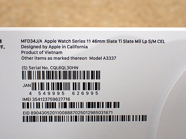 【新品 未開封】Apple Watch Series 11 Cellular 46mm スレートチタニウムケース と スレートミラネーゼループ S/M MFD34J/A(QLA1243-1) ■状態■ 新品未開封 [ケース] Apple Watch Series 11 Cellular 46mm スレートチタニウムケース [バンド] スレートミラネーゼループ S/M ■保証状況■ 保証未開始 ※基本的に未開封の状態ではAppleの保証は開始されませんが、稀に購入日から保証が開始されている場合がございます。 詳しくはアップル公式 保証状況サイトでご確認ください。 ※未開封品のため、万が一初期不良等があった場合は直接Appleへお問い合わせください。 ■モデル型番■ MFD34J/A ■製造番号■ IMEI:354123759627716 シリアル番号:CQL6QL30HN ■付属品■ 購入時のものはすべてございます。 ※購入レシート・納品書はございません 2025/12/04 K