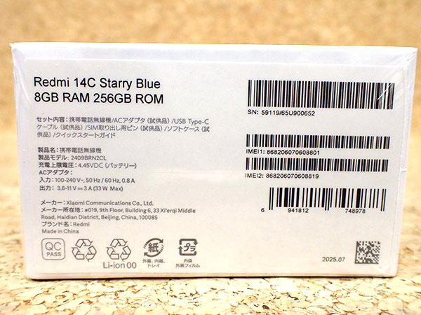 【新品 未開封】国内版 SIMフリー Xiaomi Redmi 14C 256GB スターリーブルー 2409BRN2CL スマホ Android 本体(QLA1194-1) ■状態■ 新品未開封 国内版SIMフリーです。 ※万が一初期不良などがあった場合は直接メーカーへお問い合わせをお願いいたします。 ■モデル型番■ Xiaomi Redmi 14C 2409BRN2CL ■製造番号■ 868206070608801 ■付属品■ 購入時のものはすべてございます。 ※レシート・納品書はございません 2025/12/9 T