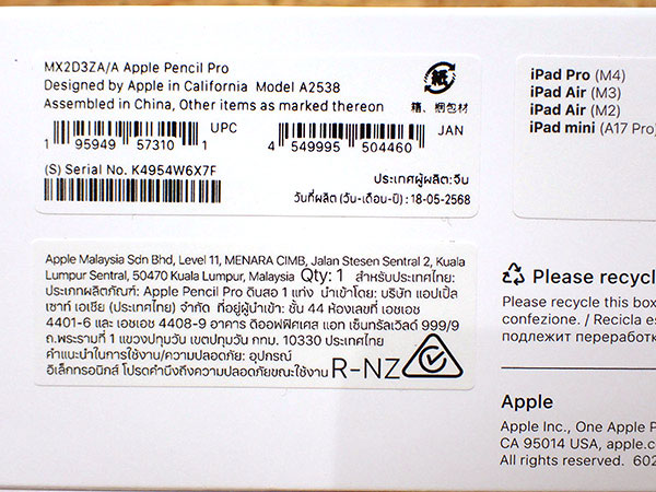 【新品 未使用】Apple Pencil Pro MX2D3ZA/A アップルペンシル プロ(QLA678-5) ■状態■ 新品未使用です。 箱を開封していますが、通常使用は行っておりません。 [Apple保証] 保証未開始です。 ※稀に購入日から保証が開始されている場合がございます。 詳しくはアップル公式 保証状況サイトでご確認ください。 ■モデル型番■ MX2D3ZA/A ■製造番号■ K4954W6X7F ■付属品■ 購入時のものはすべてあります。 ※レシートや納品書はありません。 2025/12/11 T