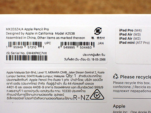 【新品 未使用】Apple Pencil Pro MX2D3ZA/A アップルペンシル プロ(QLA678-19) ■状態■ 新品未使用です。 箱を開封していますが、通常使用は行っておりません。 [Apple保証] 保証未開始です。 ※稀に購入日から保証が開始されている場合がございます。 詳しくはアップル公式保証状況サイトでご確認ください。 ■モデル型番■ MX2D3ZA/A ■製造番号■ GW4XPKC7VX ■付属品■ 購入時のものはすべてあります。 ※レシートや納品書はありません。 2025/12/4 T