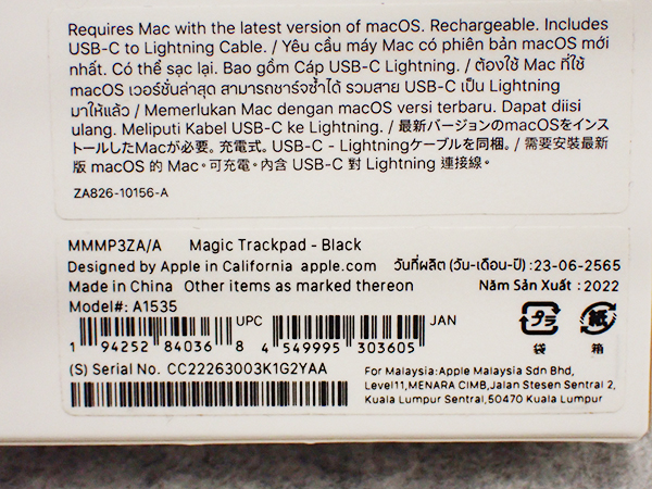 【中古 良品】Apple Magic Trackpad ブラック Multi-Touch対応 タッチパッド トラックパッド 本体 MMMP3ZA/A(QDA1057-1) ■状態■ [本体] 薄っすらとした擦れはありますが、 目立つ大きな傷はありません。 写真でご確認ください。 動作問題なし ■モデル型番■ MMMP3ZA/A ■製造番号■ SCC22263003K1G2YAA ■付属品■ 写真でご確認いただけるものですべてです。 2025/12/25 K