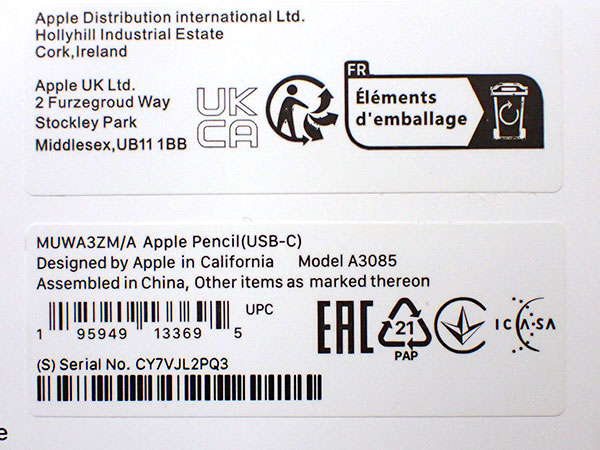 【中古 美品】海外版 Apple Pencil USB-C MUWA3ZM/A アップルペンシル(QJB51-1) ■状態■ 傷はなく綺麗です。 動作問題なし iPadとペアリングし接続確認済み ■Apple保証■ 限定保証 有効期限:2026年2月18日 詳しくはアップル公式 保証状況サイトでご確認ください。 ■モデル型番■ MUWA3ZM/A ※海外向け型番です。 日本版・海外版ともに仕様は同じで、性能や機能に違いはありません。 ■製造番号■ SCY7VJL2PQ3 ■付属品■ 写真でご確認いただけるものがすべてです。 2025/12/25 T