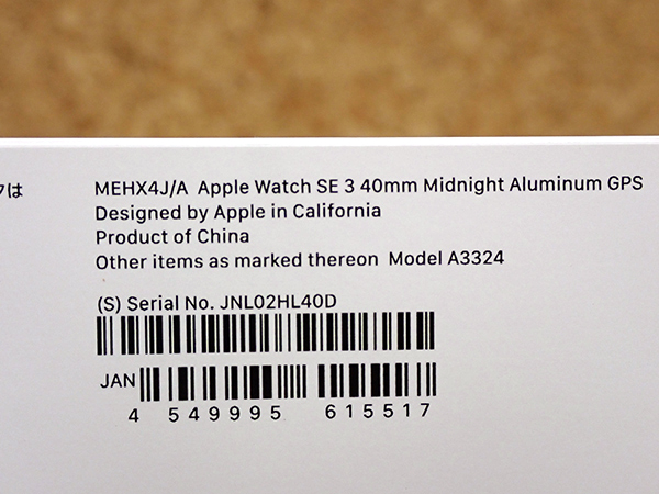 【新品 未開封】Apple Watch SE 第3世代 GPS 40mm ミッドナイトアルミニウムケース と スターライトスポーツバンド M/L(QZ411-3) ■状態■ 新品未開封 バンドをカスタムして購入したものです。 [ケース] Apple Watch SE 第3世代 GPS 40mm ミッドナイトアルミニウムケース [バンド] スターライトスポーツバンド M/L ■保証状況■ 保証未開始 ※基本的に未開封の状態ではAppleの保証は開始されませんが、稀に購入日から保証が開始されている場合がございます。 詳しくはアップル公式 保証状況サイトでご確認ください。 ※未開封品のため、万が一初期不良等があった場合は直接Appleへお問い合わせください。 ■モデル型番■ MEHX4J/A + MYJ43FE/A ■製造番号■ JNL02HL40D ■付属品■ 購入時のものはすべてございます。 ※購入レシート・納品書はございません 2025/12/23 K
