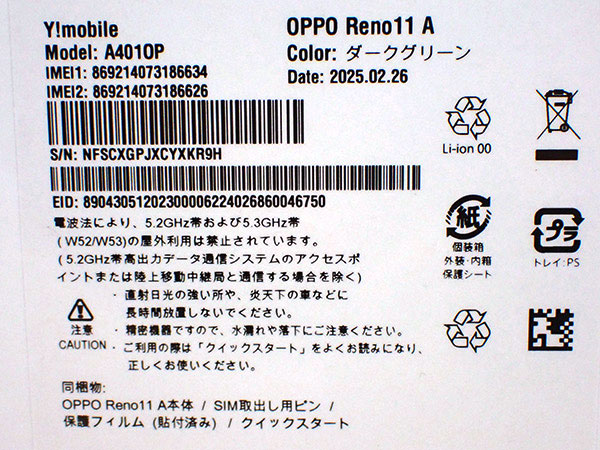 □【新品 未開封】SIMフリー ワイモバイル OPPO Reno11 A ダークグリーン A401OP 8GB + 128GB Android スマホ 本体(QZ420-6) ■状態■ ネットワーク制限〇 本体代金支払い済みです。 ワイモバイルから発売のSIMフリー端末です。 新品未開封です。 ※万が一初期不良などがあった場合は直接メーカーへお問い合わせをお願いいたします。 ■モデル型番■ A401OP ■製造番号■ 869214073186634 ■付属品■ 購入時のものはすべてございます。 ※レシート・納品書はございません 2026/1/6 T