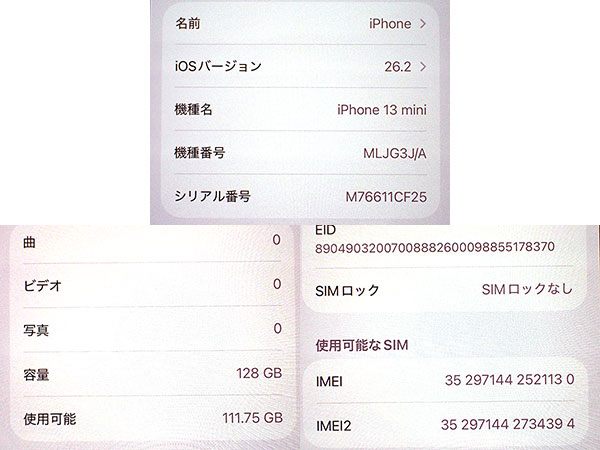 【中古】SIMフリー Softbank iPhone 13 mini 128GB レッド 赤 MLJG3J/A 本体 制限〇 一括購入(QMA941-1) ■状態■ ネットワーク利用制限〇 本体代金支払い済みです。 SIMフリー端末です。 [本体/液晶] キズや擦れがあります。 [バッテリー] 出品時の最大容量 73% ※出荷までの保管期間で1~2%変動する場合あり。 ※サービス表示です。 急にシャットダウンする等の不具合は見られませんが、バッテリー劣化があります。 ご理解いただける方のみ落札をお願いします。 リセット済み 動作問題なし AppleID削除済み ■Apple保証■ 保証期限切れ 購入済み 2022年3月12日 2023年3月12日に期限切れ 詳しくはアップル公式 保証状況サイトでご確認ください。 ■モデル型番■ MLJG3J/A ■製造番号■ IMEI: 352971442521130 シリアル番号: M76611CF25 ■付属品■ 本体のみ 2026/1/7 T