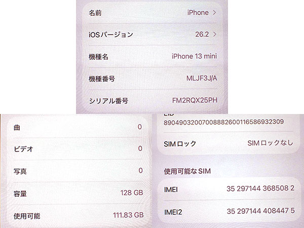 【中古】SIMフリー Softbank iPhone 13 mini 128GB ピンク MLJF3J/A 本体 制限〇 一括購入(QMA941-2) ■状態■ ネットワーク利用制限〇 本体代金支払い済みです。 SIMフリー端末です。 [本体/液晶] キズや擦れがあります。 [バッテリー] 出品時の最大容量 76% ※出荷までの保管期間で1~2%変動する場合あり。 ※サービス表示です。 急にシャットダウンする等の不具合は見られませんが、バッテリー劣化があります。 ご理解いただける方のみ落札をお願いします。 リセット済み 動作問題なし AppleID削除済み ■Apple保証■ 保証期限切れ 購入済み 2022年3月12日 2023年3月12日に期限切れ 詳しくはアップル公式 保証状況サイトでご確認ください。 ■モデル型番■ MLJF3J/A ■製造番号■ IMEI: 352971443685082 シリアル番号: FM2RQX25PH ■付属品■ 本体のみ 2026/1/7 T