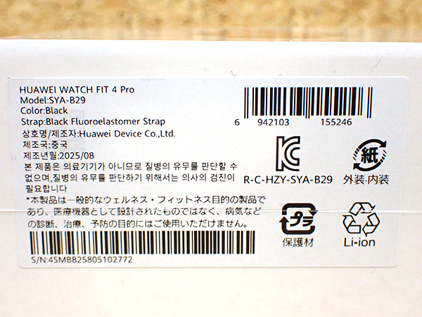 【新品 未開封】HUAWEI WATCH FIT 4 Pro ブラック SYA-B29 スマートウォッチ 本体(RAA518-3) ■状態■ 新品未開封 若干箱傷みがあります。 万が一初期不良などあった場合は 直接メーカーへお問い合わせをお願いいたします。 ■モデル型番■ SYA-B29 ■製造番号■ 4SMBB25805102772 ■付属品■ 購入時のものはすべてございます。 ※購入レシートや納品書等はございません。 2026/1/21 K