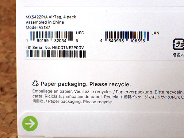 【新品 未開封】Apple 純正 AirTag エアタグ 4パック MX542ZP/A A2187 本体《全国一律送料430円》(RAA140-1) ■状態■ 新品未開封です。 万が一初期不良が発生した場合は直接メーカーにお問い合わせください。 ■保証状況■ 購入済み 2026年1月6日 限定保証 有効期限:2027年1月5日 詳しくはアップル公式 保証状況サイトでご確認ください。 ■モデル型番■ MX542ZP/A ■製造番号■ HGCQTNE2P0GV ■付属品■ 購入時のものはすべてございます。 ※購入レシートや納品書等はございません 2026/1/20 T