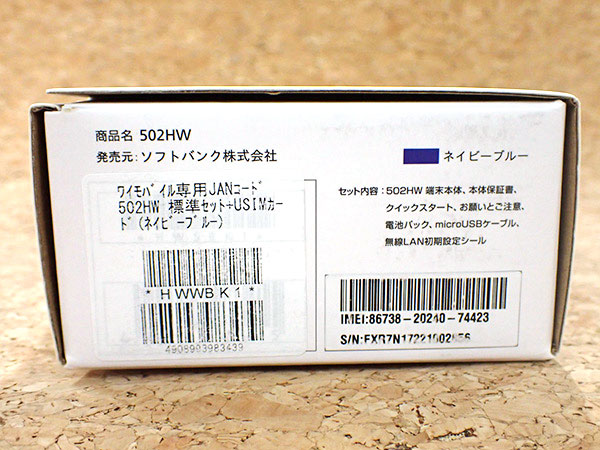 【新品 未使用】SIMロック解除 ワイモバイル Pocket Wi-Fi 502HW / 電池パック HWBBJ1 SIMフリー モバイルルーター 制限〇(QDB18-49) ■状態■ ネットワーク利用制限〇 本体代金支払い済み SIMロック解除済み 使用されるSIMカードが端末に対応しているか、 ご自身で確認をお願いいたします。 未使用です。 SIMロック解除手続きの操作と通電確認のみ行っています。 購入後、裏蓋にテープを貼った状態で保管しておりました。 出品にあたり、テープは除去済みです。 見た目にはテープ跡などの残りはございませんが、 アルコールなどの水分を含むもので拭いた場合、一時的にうっすらと跡が浮かび上がることがあります。 ■モデル型番■ 502HW ■製造番号■ 867382024074423 ■付属品■ 購入時のものはすべてございます。 ※購入レシートや納品書等はございません 2026/1/20 T