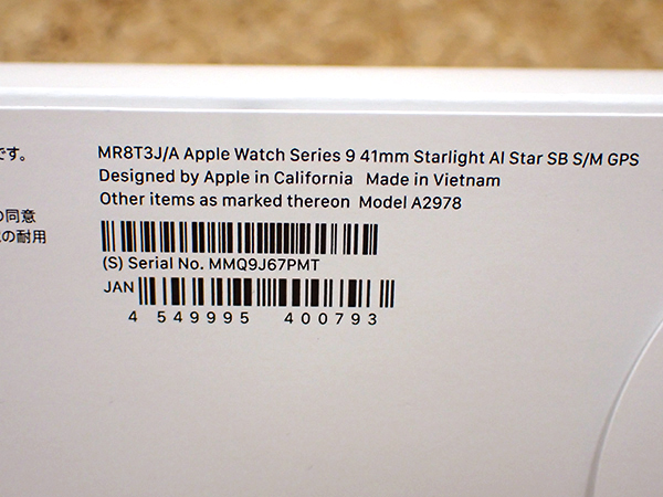 【新品 未開封】Apple Watch Series 9 GPS 41mm スターライトアルミニウムケース と スターライトスポーツバンド S/M MR8T3J/A(RAB86-1) ■状態■ 新品未開封 [ケース] Apple Watch Series 9 GPS 41mm スターライトアルミニウムケース [バンド] スターライトスポーツバンド S/M ■保証状況■ 保証未開始 ※基本的に未開封の状態ではAppleの保証は開始されませんが、稀に購入日から保証が開始されている場合がございます。 詳しくはアップル公式 保証状況サイトでご確認ください。 ※未開封品のため、万が一初期不良等があった場合は直接Appleへお問い合わせください。 ■モデル型番■ MR8T3J/A ■製造番号■ MMQ9J67PMT ■付属品■ 購入時のものはすべてございます。 ※購入レシート・納品書はございません 2026/1/23 K