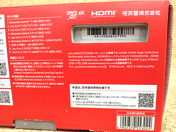 【新品 未使用】Nintendo Switch 2 国内版 任天堂 本体(RAA39-1) ■状態■ 新品未使用です。 外箱に傷みがあります。 ※未使用品になりますので、初期不良などがあった場合は 直接メーカー様へお問い合わせください。 ■モデル型番■ Nintendo Switch 2 国内版 ■製造番号■ HAJ50868427990 ■付属品■ 購入時のものはすべてございます。 ※購入レシート、納品書等はございません 2026/1/23 K