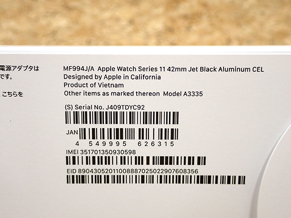 【新品 未開封】Apple Watch Series 11 Cellular 42mm ジェットブラックアルミニウムケース と ブラックソロループ サイズ5(QMA1135-2) ■状態■ 新品未開封 バンドをカスタムして購入したものです。 [ケース] Apple Watch Series 11 Cellular 42mm ジェットブラックアルミニウムケース [バンド] ブラックソロループ サイズ5 ■保証状況■ 保証未開始 ※基本的に未開封の状態ではAppleの保証は開始されませんが、稀に購入日から保証が開始されている場合がございます。 詳しくはアップル公式 保証状況サイトでご確認ください。 ※未開封品のため、万が一初期不良等があった場合は直接Appleへお問い合わせください。 ■モデル型番■ MF994J/A + MY7U3FE/A ■製造番号■ IMEI:351701350930598 シリアル番号:J409TDYC92 ■付属品■ 購入時のものはすべてございます。 ※購入レシート・納品書はございません 2026/1/27 K