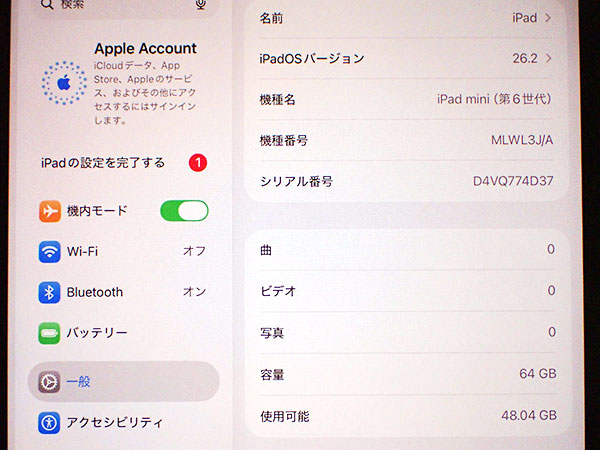 【中古 美品】iPad mini 8.3インチ 第6世代 Wi-Fi 64GB ピンク MLWL3J/A 2021年秋モデル 本体(RAA311-2) ■状態■ Wi-Fiモデルですので SIMカードを使っての通信・通話はできません。 [フレーム、液晶] キズや擦れはなくとても綺麗です。 動作問題なし リセット済み AppleID削除済み [バッテリー] 出品時の最大容量:100% ※出荷までの保管期間で1~2% 変動する場合あり。 ※検査ソフトで確認しています。 数値は目安としてお考え下さい。 ■Apple保証■ 保証期限切れ 購入済み 2023年2月20日 2025年2月22日に期限切れ 詳しくはアップル公式 保証状況サイトでご確認ください。 ■モデル型番■ MLWL3J/A ■製造番号■ D4VQ774D37 ■付属品■ 本体のみ 2026/2/5 T
