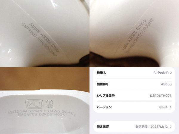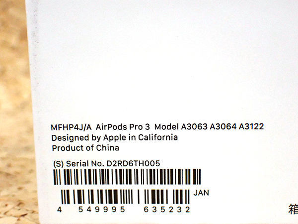 【中古 良品】Apple 純正 AirPods Pro 第3世代 インイヤーアクティブノイズキャンセリング搭載 USB-C MFHP4J/A 本体(RAA553-1) ■状態■ [充電ケース/イヤホン] ケースに擦れはありますが、 目立つ大きな傷はありません。 イヤホンに目立つ大きな傷はありません。 写真でご確認ください。 動作問題なし ペアリング・通電確認済み 初期化済み ■保証状況■ 購入済み 2025年12月12日 限定保証 有効期限:2026年12月12日 詳しくはアップル公式 保証状況サイトでご確認ください。 ■モデル型番■ MFHP4J/A ■製造番号■ D2RD6TH005 ■付属品■ 写真でご確認いただけるものがすべてです。 2026/1/29 K