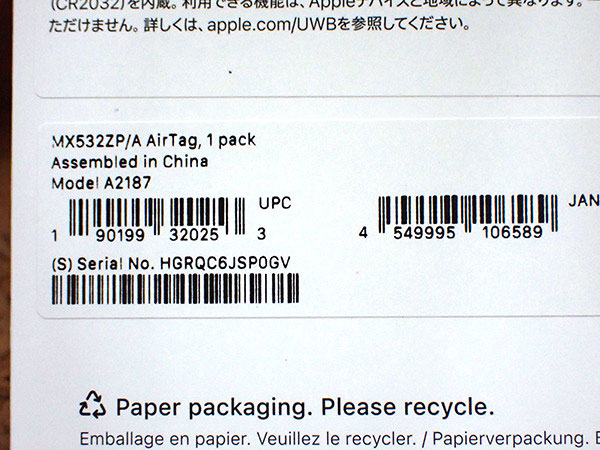 【新品 未開封】Apple 純正 AirTag エアタグ 1パック MX532ZP/A A2187 本体《全国一律送料430円》(QMA992-2) ■状態■ 新品未開封です。 ■保証状況■ 保証期限切れ 詳しくはアップル公式 保証状況サイトでご確認ください。 万が一初期不良が発生した場合は直接メーカーにお問い合わせください。 ■モデル型番■ MX532ZP/A ■製造番号■ HGRQC6JSP0GV ■付属品■ 購入時のものはすべてございます。 ※購入レシートや納品書等はございません 2026/1/20 T