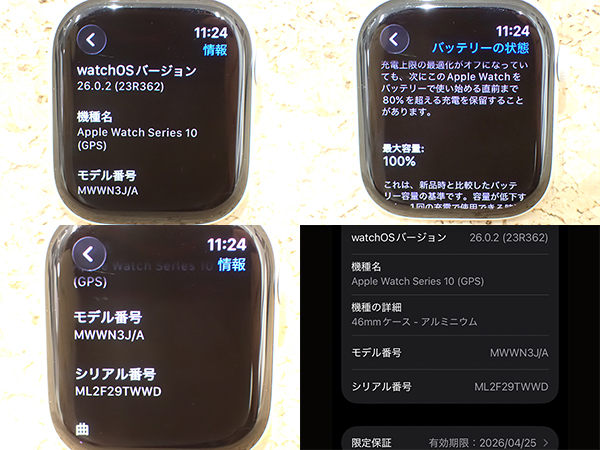 【中古】Apple Watch Series 10 GPS 46mm シルバーアルミニウムケース MWWN3J/A A2999 本体のみ(RBA419-1) ■状態■ [本体/液晶] 本体と液晶共に傷や擦れがあります。 写真でご確認ください。 動作問題なし ペアリング解除済み AppleID削除済み(アクティベーションロック解除済み) ■Apple保証■ 購入済み 2025年4月26日 限定保証 有効期限:2026年4月25日 詳しくはアップル公式 保証状況サイトでご確認ください。 ■モデル型番■ MWWN3J/A A2999 ■製造番号■ ML2F29TWWD ■付属品■ 本体のみ 2026/2/19 K