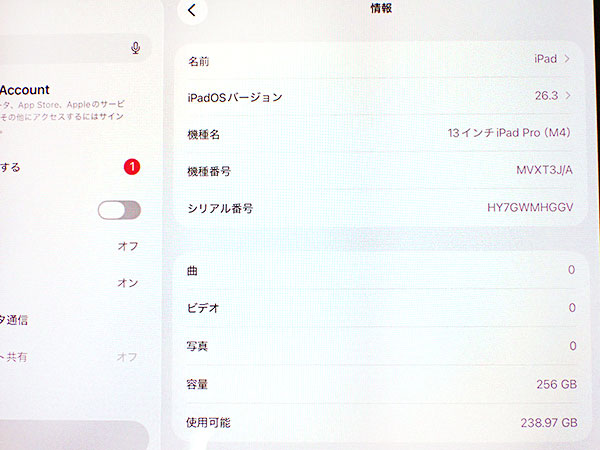 【中古 美品】SIMフリー Softbank iPad Pro 13インチ M4 Cellular 256GB シルバー MVXT3J/A 2024年春 標準ガラス 本体 制限〇(RBA985-1) ■状態■ ネットワーク利用制限〇 本体代金支払い済みです。 SIMフリー端末です。 ご利用されるSIMカードにより、APN設定や構成プロファイルをインストールする必要がございます。 設定方法に関しては、ご契約されているキャリアへご確認ください。 [本体] キズや擦れはなくとても綺麗です。 動作問題なし リセット済み AppleID(アクティベーションロック)削除済み [バッテリー] 出品時の最大容量 100% ※出荷までの保管期間で1~2%変動する場合あり。 ■Apple保証■ 保証期限切れ 購入済み 2024年6月6日 2025年6月6日に期限切れ 詳しくはアップル公式 保証状況サイトでご確認ください。 ■モデル型番■ MVXT3J/A ■製造番号■ IMEI : 352045539464601 シリアル番号 : HY7GWMHGGV ■付属品■ 本体、箱、印刷物のみ 2026/2/26 T