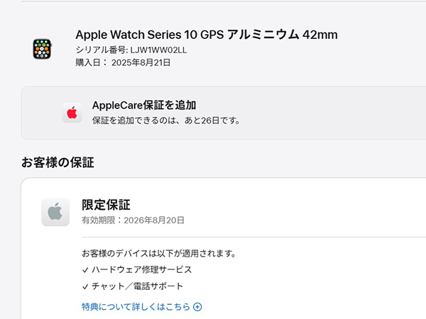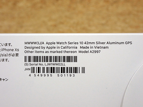 ☆【新品 未開封】Apple Watch Series10 GPS 42mm シルバーアルミニウムケース と インクスポーツループ MWWW3J/A(QZ264-2) ■状態■ 新品未開封 [ケース] Apple Watch Series10 GPS 42mm シルバーアルミニウムケース [バンド] インクスポーツループ 未開封品のため、万が一初期不良等があった場合は直接Appleへお問い合わせください。 ■保証状況■ 購入日: 2025年8月21日 限定保証 有効期限:2026年8月20日 詳しくはアップル公式 保証状況サイトでご確認ください。 ■モデル型番■ MWWW3J/A + MXKW3FE/A ■製造番号■ LJW1WW02LL ■付属品■ 購入時のものはすべてございます。 ※購入レシート・納品書はございません 2025/8/26 K