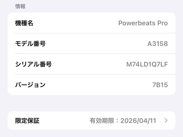 【中古 良品】Powerbeats Pro 2 MX723PA/A ジェットブラック ビーツ エレクトロニクス Beats ワイヤレスイヤホン 本体 (QGA1088-1) ■状態■ [イヤホン/充電ケース] 薄っすらとした擦れはありますが、 目立つ大きな傷はありません。 写真でご確認ください。 動作問題なし ペアリング・通電確認済み 初期化済み ■保証状況■ 有効期限:2026年4月11日 詳しくはアップル公式 保証状況サイトでご確認ください。 ■モデル型番■ MX723PA/A ■製造番号■ M74LD1Q7LF ■付属品■ 写真でご確認いただけるものがすべてです。 2025/8/29 K