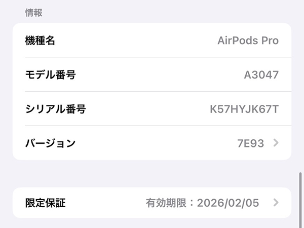 【中古】Apple 純正 AirPods Pro 第2世代 MagSafe充電ケース USB-C MTJV3J/A 本体(QHA275-3) ■状態■ [充電ケース/イヤホン] 傷や擦れがあります。 充電ケースに取れない汚れがあります。 写真でご確認ください。 動作問題なし ペアリング・通電確認済み 初期化済み ■保証状況■ 限定保証 有効期限:2026年2月5日 詳しくはアップル公式 保証状況サイトでご確認ください。 ■モデル型番■ MTJV3J/A ■製造番号■ K57HYJK67T ■付属品■ 写真でご確認いただけるものがすべてです。 2025/9/19 K