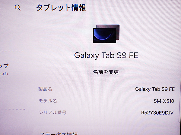 【中古 良品】Galaxy Tab S9 FE SM-X510 128GB Wi-Fi グレー 本体 Android アンドロイド タブレット SAMSUNG サムスン(QGA488-2) ■状態■ Wi-Fiモデルですので SIMカードを使っての通信・通話はできません。 [本体/液晶] 小さい傷はありますが、目立つ大きな傷はありません。 [バッテリー] バッテリー最大容量:100% ※出荷までの保管期間で1~2% 変動する場合あり。 ※検査ソフトで確認しています。 数値は目安としてお考え下さい。 写真でご確認ください。 動作問題なし リセット済み グーグルアカウント削除済み ■モデル型番■ SM-X510 ■製造番号■ R52Y30E9DJV ■付属品■ 本体のみ 2025/9/19 K