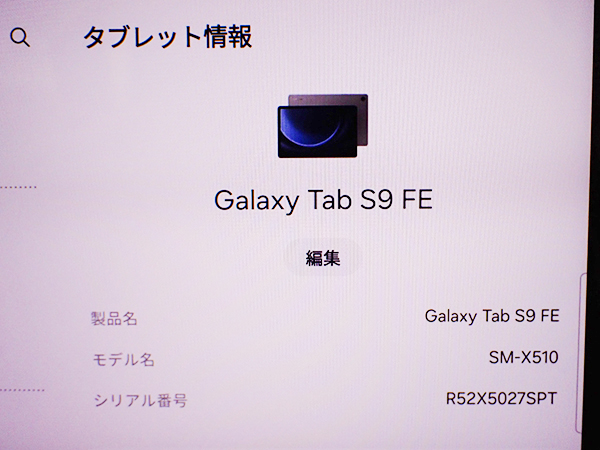 【中古 美品】Galaxy Tab S9 FE SM-X510 128GB Wi-Fi グレー 本体 Android アンドロイド タブレット SAMSUNG サムスン(QGA488-1) ■状態■ Wi-Fiモデルですので SIMカードを使っての通信・通話はできません。 [本体/液晶] 目立つ傷や擦れなどなくとても綺麗な状態です。 [バッテリー] バッテリー最大容量:100% ※出荷までの保管期間で1~2% 変動する場合あり。 ※検査ソフトで確認しています。 数値は目安としてお考え下さい。 写真でご確認ください。 動作問題なし リセット済み グーグルアカウント削除済み ■モデル型番■ SM-X510 ■製造番号■ R52X5027SPT ■付属品■ 本体のみ 2025/9/19 K