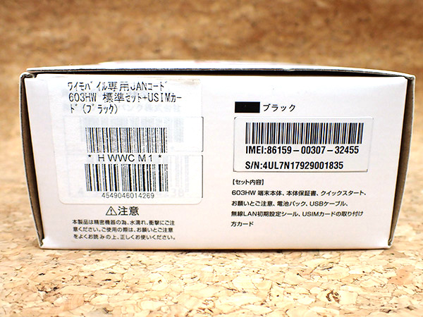【新品 未使用】SIMロック解除 ワイモバイル Pocket Wi-Fi 603HW / 電池パック HWBCM1 SIMフリー モバイルルーター 制限〇(QDB18-195) ■状態■ ネットワーク利用制限〇 本体代金支払い済み SIMロック解除済み 使用されるSIMカードが端末に対応しているか、 ご自身で確認をお願いいたします。 未使用です。 SIMロック解除手続きの操作と通電確認のみ行っています。 ■モデル型番■ 603HW ■製造番号■ 861590030732455 ■付属品■ 購入時のものはすべてございます。 ※購入レシートや納品書等はございません 2025/9/17 T