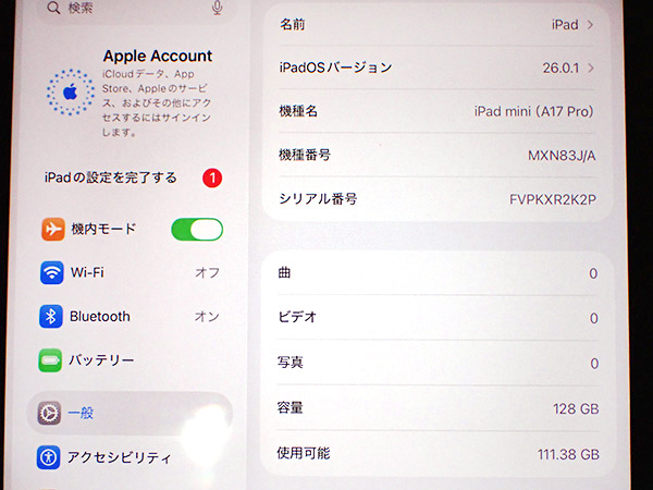 【中古 美品】iPad mini 8.3インチ 第7世代 Wi-Fi 128GB スターライト MXN83J/A 2024年秋モデル 本体 未使用付属完品 バッテリー最大容量100%(QKA759-1) ■状態■ Wi-Fiモデルですので SIMカードを使っての通信・通話はできません。 [フレーム、液晶] 傷や擦れはなく綺麗です。 動作問題なし リセット済み AppleID削除済み [バッテリー] バッテリー最大容量:100% ※出荷までの保管期間で1~2% 変動する場合あり。 【Apple保証】 購入日: 2025年3月18日 限定保証 有効期限:2026年3月17日 詳しくはアップル公式 保証状況サイトでご確認ください。 ■モデル型番■ MXN83J/A ■製造番号■ FVPKXR2K2P ■付属品■ 購入時のものは全てあります。 ※納品書、レシートはありません。 2025/10/23 T
