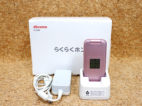 【中古 美品】SIMロック解除 富士通 らくらくホン F-01M 携帯電話 SIMフリー 本体 制限〇 一括購入 卓上ホルダー付き JAN:4942857207569